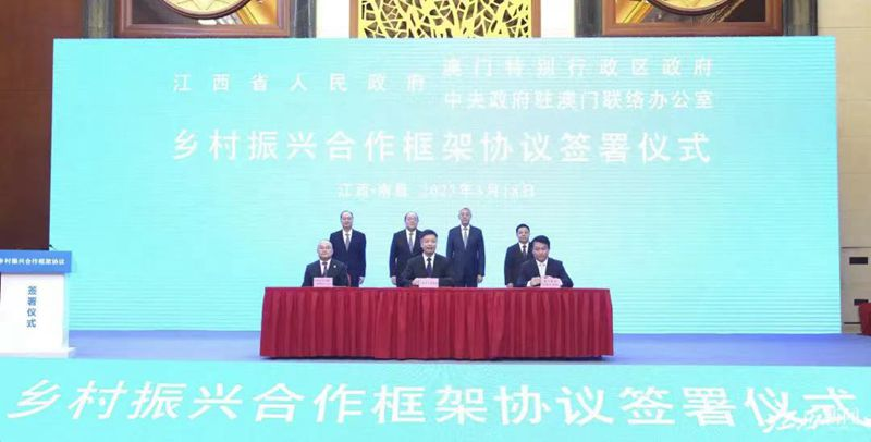 3月18日,江西省人民政府、澳門(mén)特別行政區政府、中央政府駐澳門(mén)聯(lián)絡(luò )辦公室在南昌共同簽署鄉村振興合作框架協(xié)議。