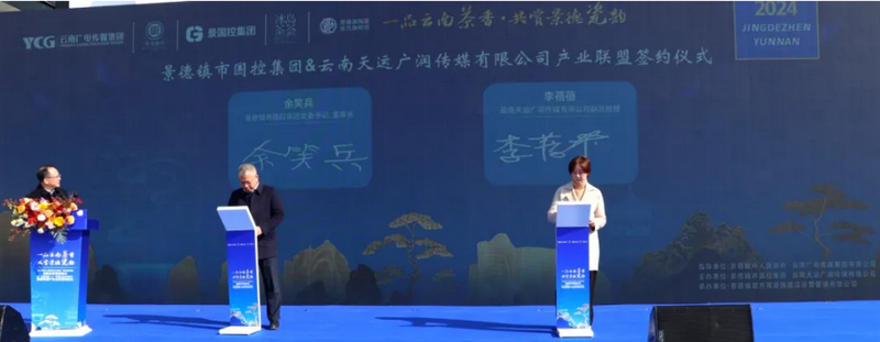 12月29日上午,由景德鎮市人民政府、云南廣電傳媒集團有限公司指導,景德鎮市國控集團、云南天運廣潤傳媒有限公司主辦,景德鎮官方陶瓷旗艦店運營(yíng)管理有限公司承辦的“‘一品云南茶香·共賞景德瓷韻’江西省景德鎮市人民政府與云南廣電傳媒集團有限公司戰略合作暨產(chǎn)業(yè)聯(lián)盟簽約儀式”于景德鎮陶瓷官方旗艦店高嶺大道店舉行。