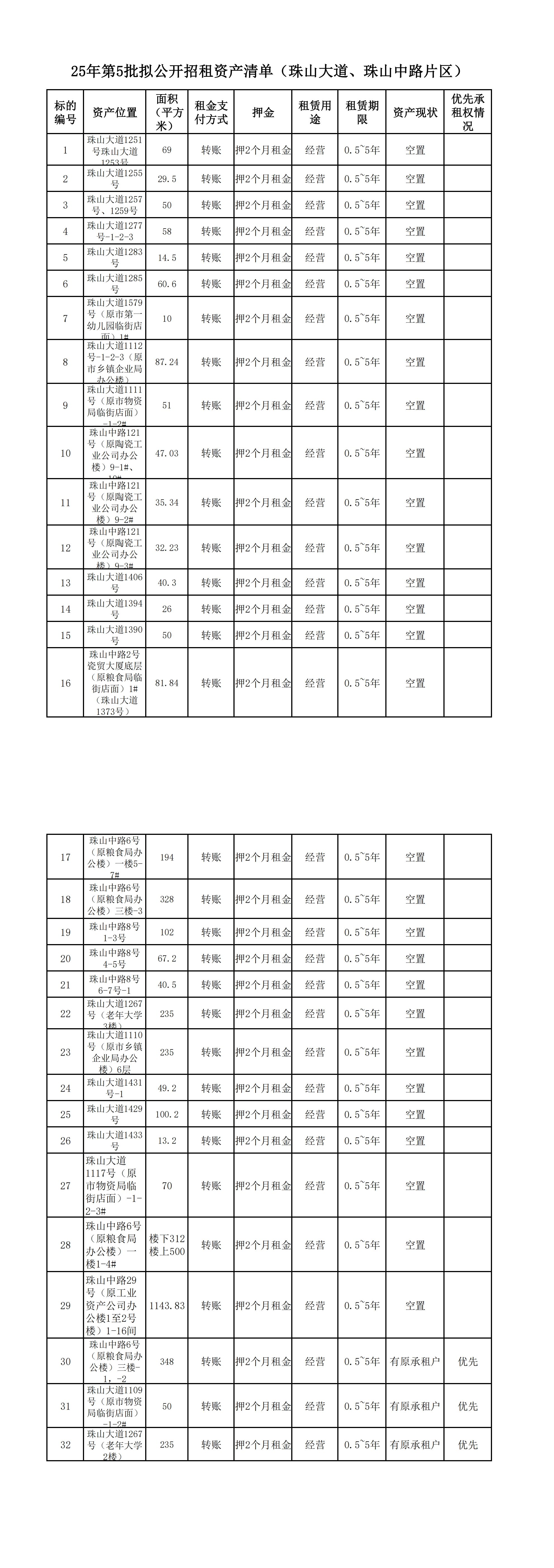 現位于珠山大道、珠山中路片區資產(chǎn)進(jìn)行公開(kāi)招租,具體招租標的物信息面積詳見(jiàn)《招租清單》