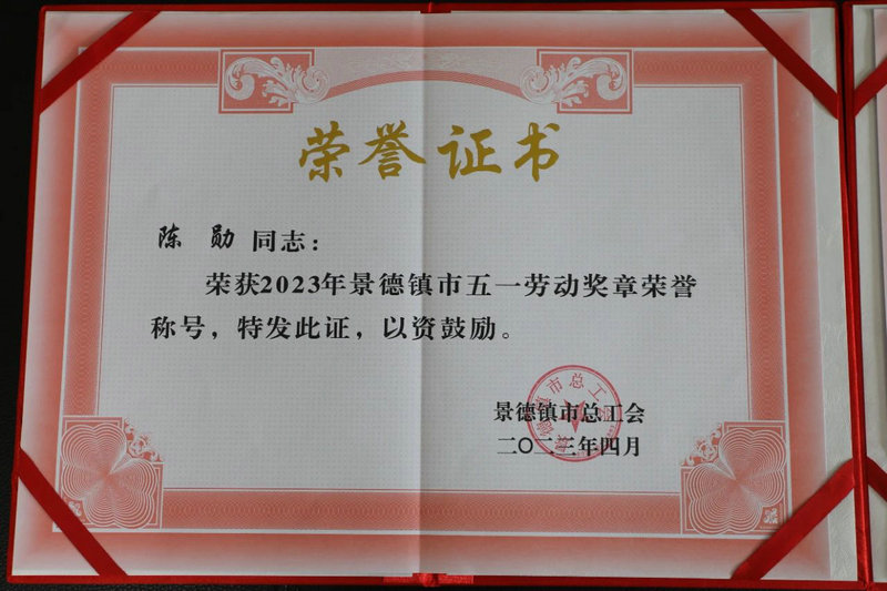近日,集團員工陳勛和江羚瑋榮獲市總工會(huì )授予的2023年景德鎮市“五一勞動(dòng)獎?wù)隆睒s譽(yù)稱(chēng)號。
