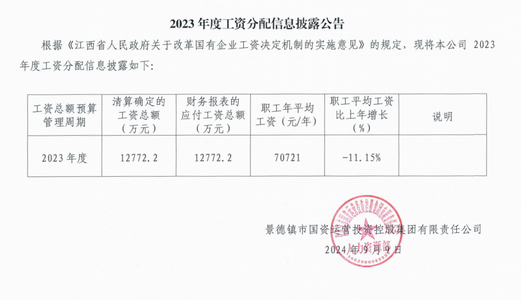 2023年度工資分配信息披露公告