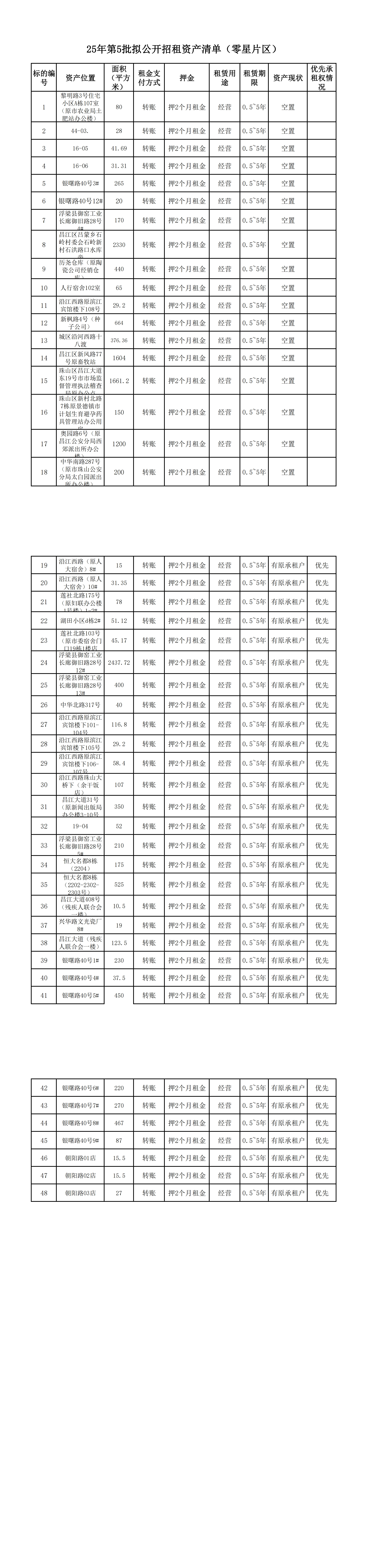 現位于零星片區資產(chǎn)進(jìn)行公開(kāi)招租,具體招租標的物信息面積詳見(jiàn)《招租清單》